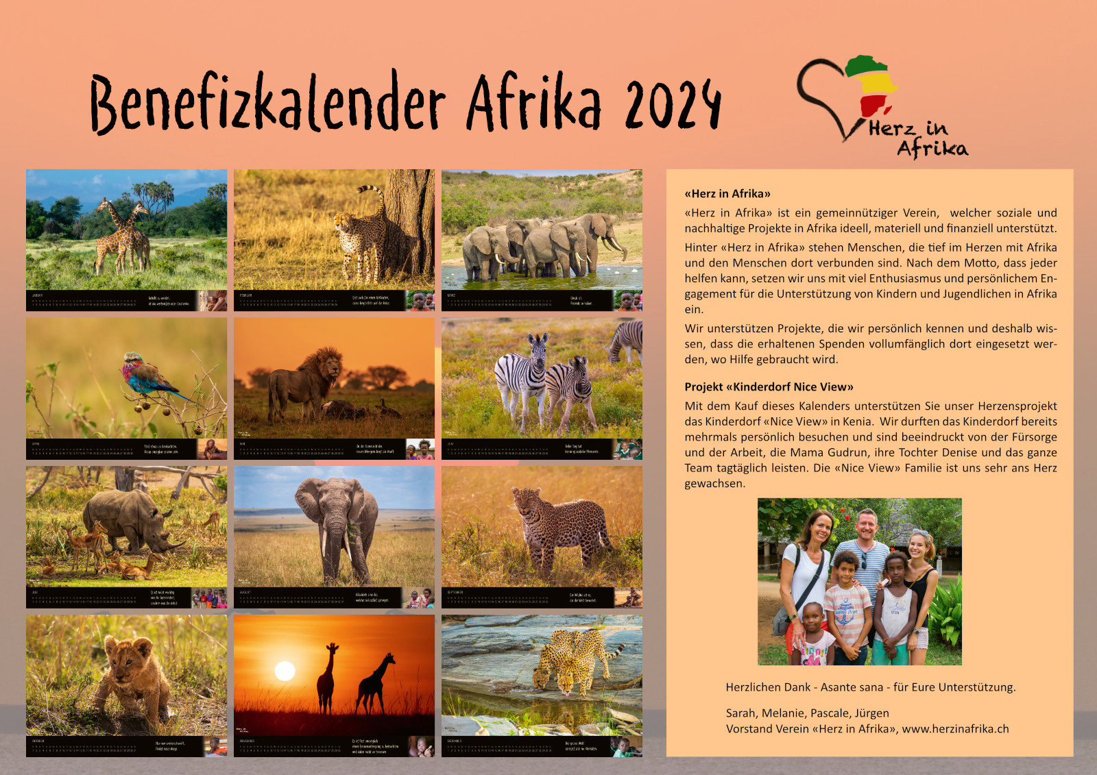 24. November 2023Der Afrika Kalender „Herz in Afrika“ ist als Foto Wandkalender im A3 Format oder als Tischkalender mit Holzaufsteller (Holzsockel) verfügbar.