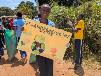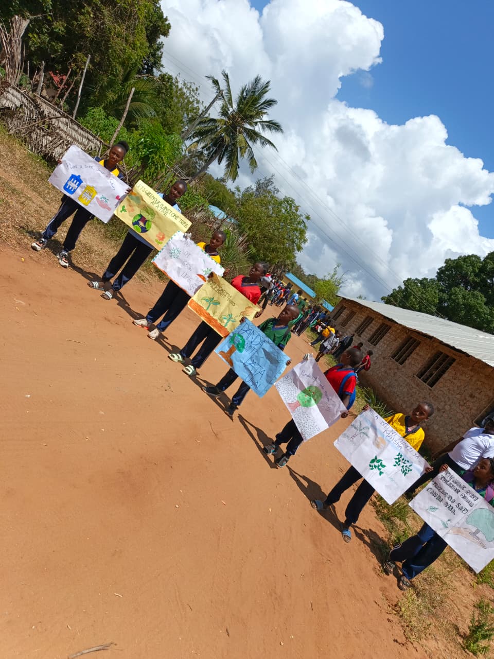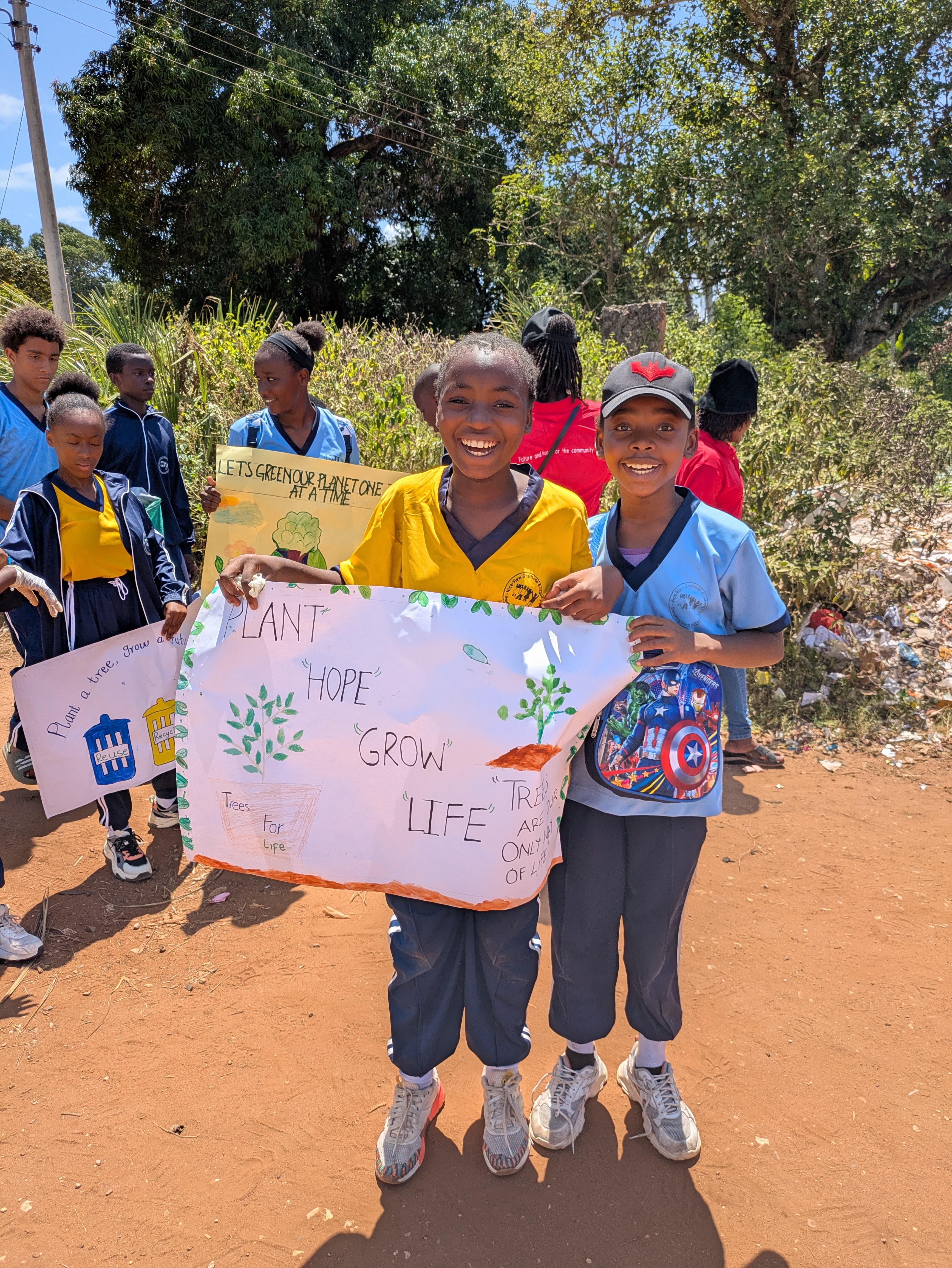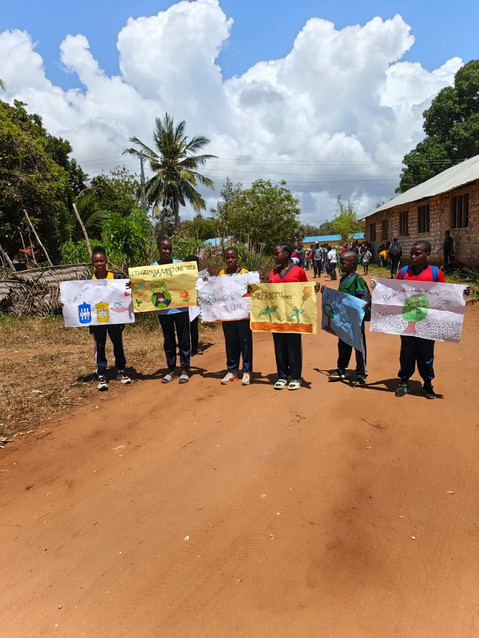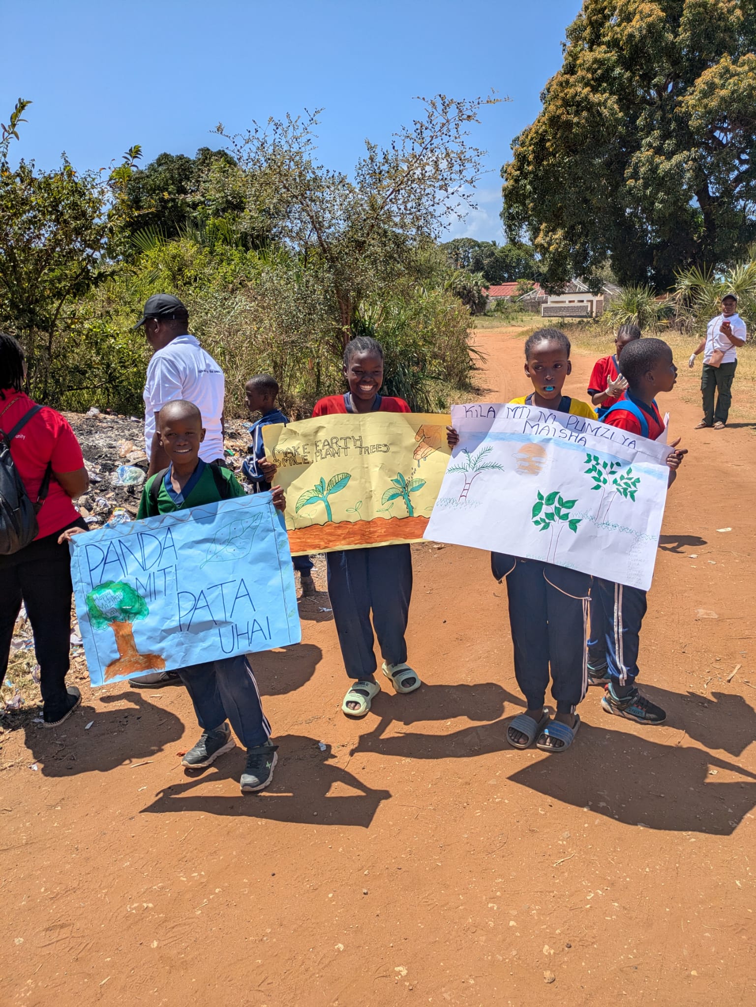 Mit Botschaften wie „Lasst uns unseren Planeten grüner machen“ und „Panda Miti, Linda Maisha“ inspirierten die Schüler die Gemeinde zu mehr Engagement für eine sauberere, grünere Zukunft.