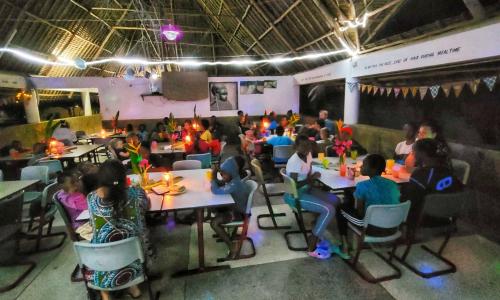 On Easter Sunday morning, an Easter service was held in the dining room.
