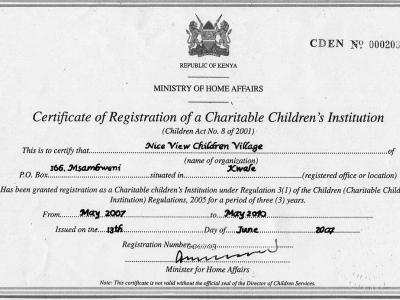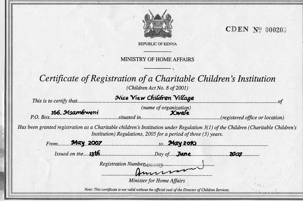 Certificates file attachment 1 Dateianhänge registration children’s village 2020 2021_Zertifikat_Nice_View_Childrens_Village_0.jpg Download registration children’s village 2016 regstration%202016.jpeg Download registration school 2012 School%20Certificate.jpg Download license clinic 2018 registration children’s village 2000 registration children’s village 2000 Zertifikat.jpg Download registration children’s village 2007 Certificate_Mai_2007.jpg Download registration children’s village 2011 Zertifikat_2011-2013.jpg Download ACCI certificate children’s village ACCIK%20Certificate%202016.jpg Download registration clinic Registration%20neu_0.jpg Download license clinic 2016 Nice%20View%20001.jpg Download Teilen
