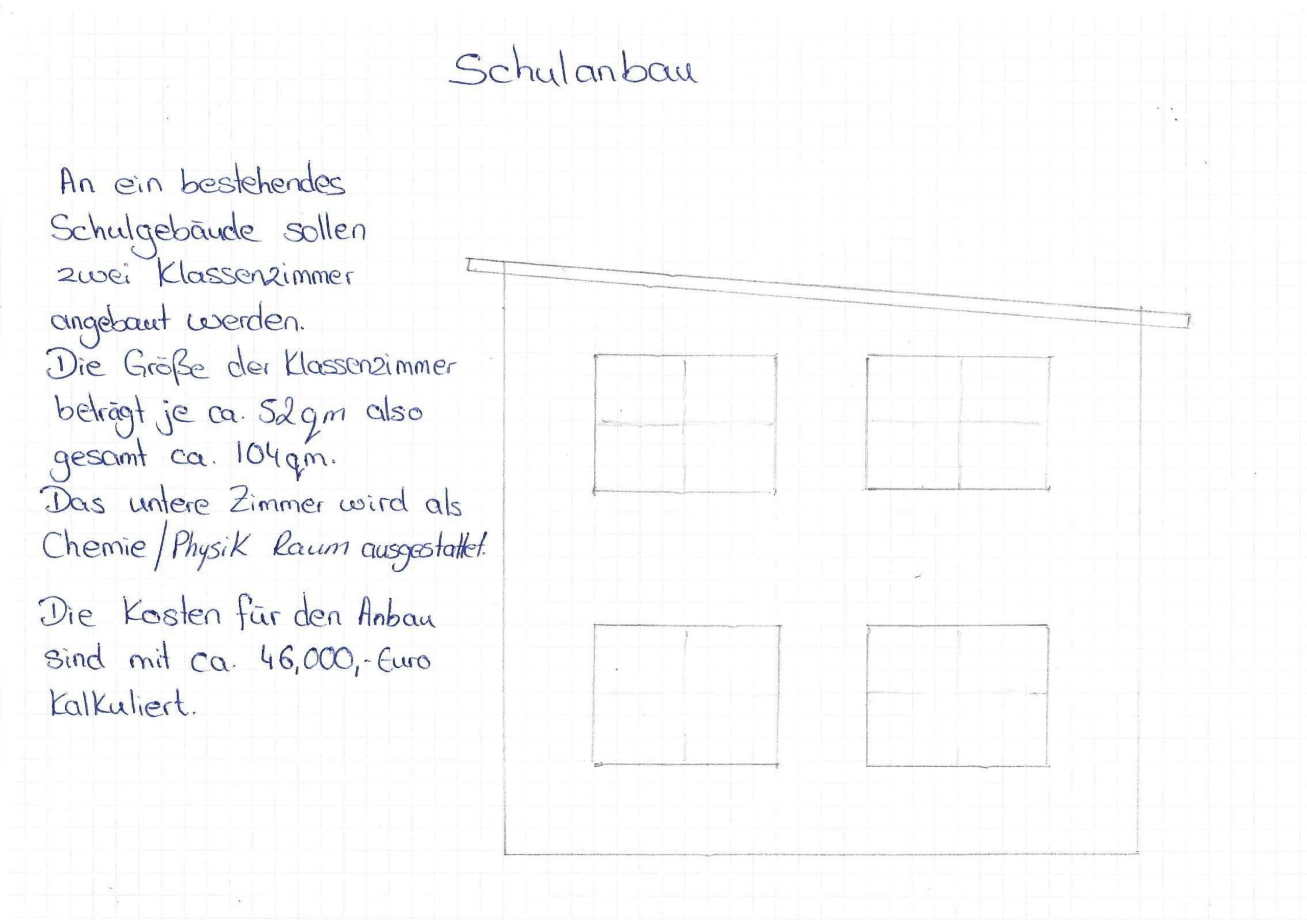 To meet the new requirements, we plan to build a 7 x 8 m annexe. The estimated costs for the construction alone are 46,000.00 EUR. (Breakdown of costs attached)