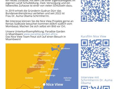 The children and adults in the Nice View Children’s Village see their future prospects completely differently. Little by little, the children who, when they were accepted into the children’s village, left behind a life without prospects in misery and without affection become young, self-confident adults who lead their lives independently, have their dreams and goals, and see good opportunities to achieve and realize them in their homeland. Although they learn a lot about Germany and life in Europe from Mama Gudrun and at school, they see their future in Kenya.