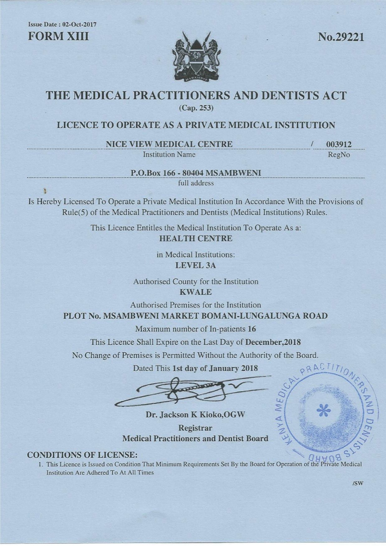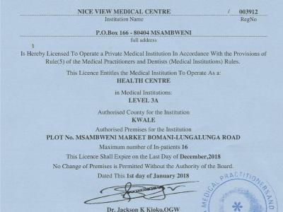 6. December 2017Since the Nice View Clinic was so far just registered as Medical Centre, the registration had to be adapted. In principle no inpatient treatments were allowed, but we had on an interim basis a special permit.