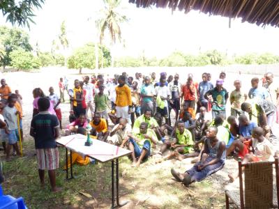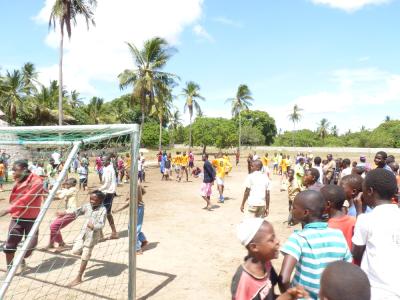 Nach 15 Minuten dann das erste Tor. 1:0 für die Gegner Mannschaft. Das erste Gegentor seit dem kompletten Turnier. Das Nice View Team war sichtlich überrascht, wie dies passieren konnte. Doch nun sind die Fans an der Reihe. Lauthals wird im Chor über das Spielfeld geschrien: „ Nice View go ! Shoot a goal ! Nice View go ! Shoot a goal !“ Und kurz darauf erfolgte das Ausgleichstor. 1:1 ! Alle Kinder und Zuschauer sind völlig aus dem Häuschen und rennen schreiend mit dem Banner und den Rasseln auf das Spielfeld. Eine unbeschreibliche Fußball-Atmosphäre, die keinem Stadion nachsteht.