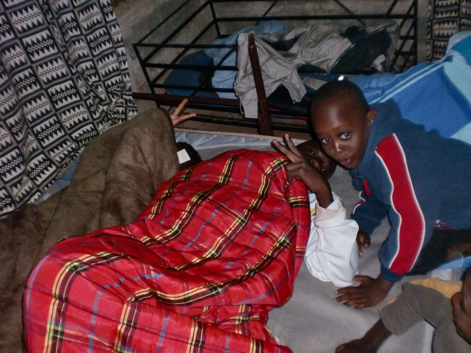 Mit dabei waren auch ein paar der kleinen Nachwuchstalente, gut umsorgt von Onkel Henry und unserem langjährigen Mechaniker Maduka. Beide selbst gute Fußballspieler und Trainer unseres Teams. Und auch Haji, der momentan gezwungenermaßen ein Semester Leerlauf hat (üblich in Kenia, um den Studenten die Möglichkeit zu geben, Geld für die folgenden Semester zu verdienen), hat ein paar Tage frei genommen und sich angeschlossen. Er jobbt momentan wieder bei einem Safariunternehmen.