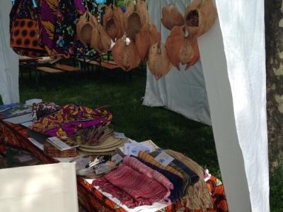 Um uns herum war ein buntes Treiben auf dem Afrika-Karibik-Markt mit einer bunten Auswahl von afrikanischer Kunst und kulinarischen Spezialitäten aus Afrika. Ganz speziell der Essenstand mit den kenianischen Speisen hatte es dem Team angetan-