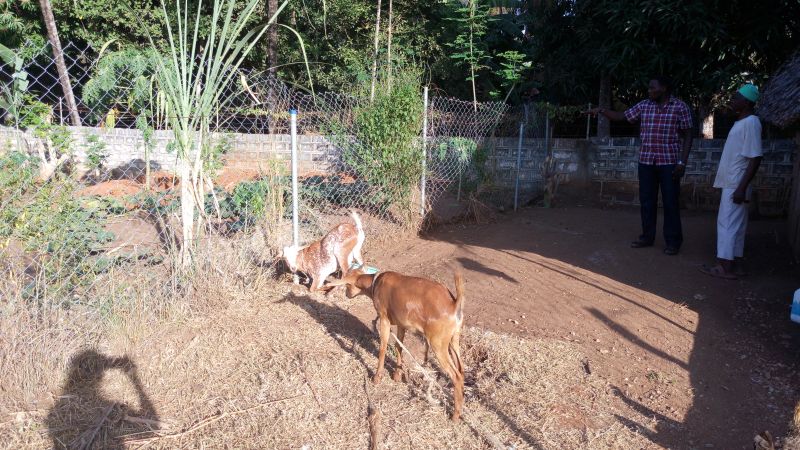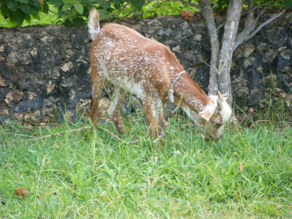 Von ihrem Stiefvater bekam U zum Abschied einen Ziegenbock geschenkt. Dieser ist sehr zutraulich und anhänglich, konnte auf Dauer aber schlecht alleine bleiben. Daher wurde noch zusätzlich eine Ziege gekauft und mehrere Gänse komplettieren nun den Nice View Bauernhof auf dem Sportgelände.