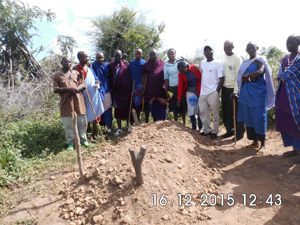 12. Mai 2016Ende letzten Jahres ist Us Mutter völlig unerwartet verstorben. Nach längeren Gesprächen mit dem Jugendamt durfte U, unter Begleitung eines Mitarbeiters des Jugendamts und 3 unserer Mitarbeiter, an den Trauerfeierlichkeiten teilnehmen und das Grab ihrer Mutter besuchen. Sie wurde gleich an ihrem Todestag begraben, die Feierlichkeiten dauern bei den Massai jedoch normalerweise 3 Tage.