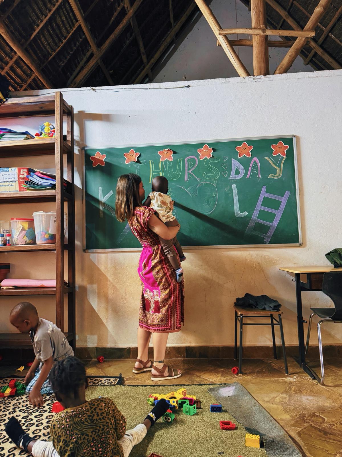 Wir waren im Kindergarten, haben beim Unterricht mitgemacht und haben eine ausführliche Führung über das ganze Gelände bekommen.