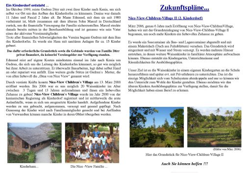 Impressionen Nice View Projekte Msambweni Kenia 2006 Entdecken Sie diese beeindruckende Bildergalerie aus unseren Projekten in Kenia. 📸 Galerie-Informationen Anzahl Bilder: 85 Zuletzt aktualisiert: 26.08.2025 11:06 Alle Bilder können durch Anklicken in voller Größe angezeigt werden. Teilen