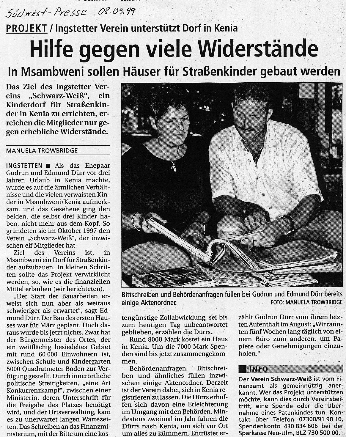 Das Ziel des Ingstetter Vereins „Schwarz & Weiß“, ein Kinderdorf für die Straßenkinder in Kenia zu errichten, erreichen die Mitglieder nur gegen erhebliche Widerstände.