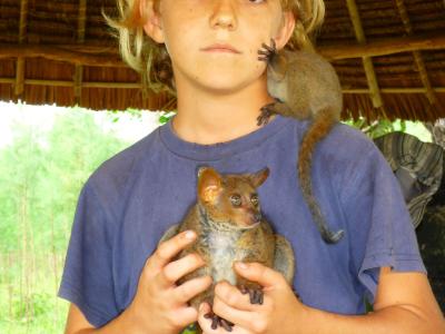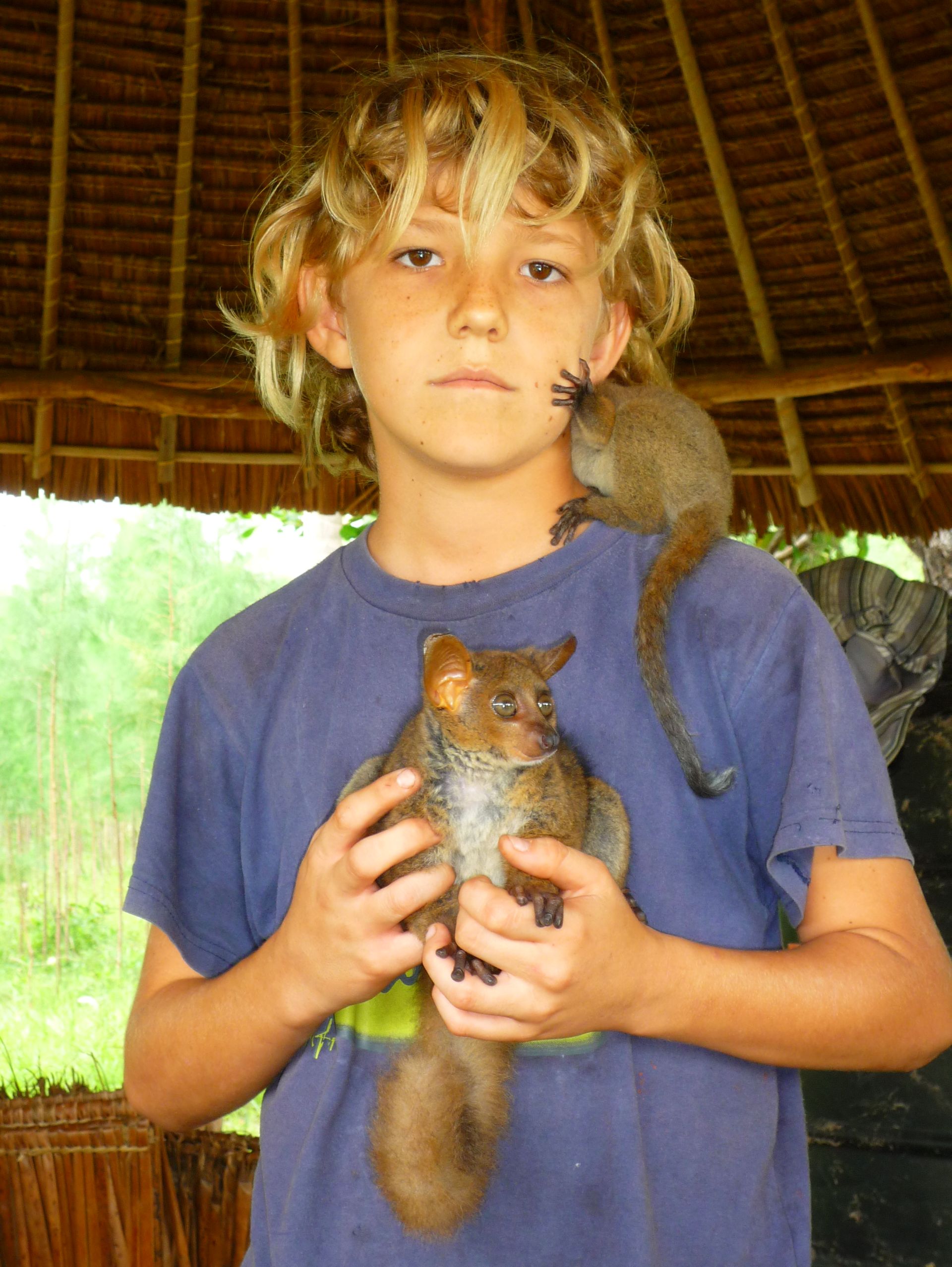 Pascal ist das einzige weiße Kind in Msambweni, aber das spielt keine Rolle. „Ich merke das nicht und es lässt mich keiner merken“, sagt er. Weil er Kiswahili spricht, klappt die Integration automatisch. Zwei wichtige Freunde prägen sein Leben. Da ist einmal Joshua, der in seine Klasse geht und mit dem er viel Zeit verbringt. Und zum anderen Masaka, Leiter der Farm, die zum Kinderdorf gehört. Jedes Wochenende und in den Ferien ist Pascal auf der Farm zu finden. Hier werden Gemüse, Früchte und Kokosnüsse für den eigenen Bedarf angebaut. Hühner, Enten, ein Esel und eine Kuh gehören dazu, ebenso wie drei zahme Affen und zwei kleine Gazellen, die mit der Flasche aufgezogen wurden. „Die Tiere leben in Kenia frei und auch ich fühle mich hier freier als anderswo“, sagt Pascal. Masaka hat ihm alles über „farming“ beigebracht und über das Jagen. Ein Großteil des Lebens hier spielt sich draußen ab. Angeln, Schwimmen, Fußball und alles, was mit der Farm zusammenhängt, sind Pascals Hobbys. Darüber hinaus mag er sehr gerne Musik – vor allem Pop und Gospel – schaut gerne lustige DVDs und liest Tierbücher. Mit seinen Eltern lebt er in einem kleinen Haus, in dem er sein eigenes Zimmer hat. Eines seiner Lieblingsgerichte sind Krautspätzle, die Mutter Gudrun manchmal kocht. „Leider gibt es hier selten Sauerkraut zu kaufen. Wir lassen es immer von Besuchern aus Deutschland mitbringen“, sagt sie.