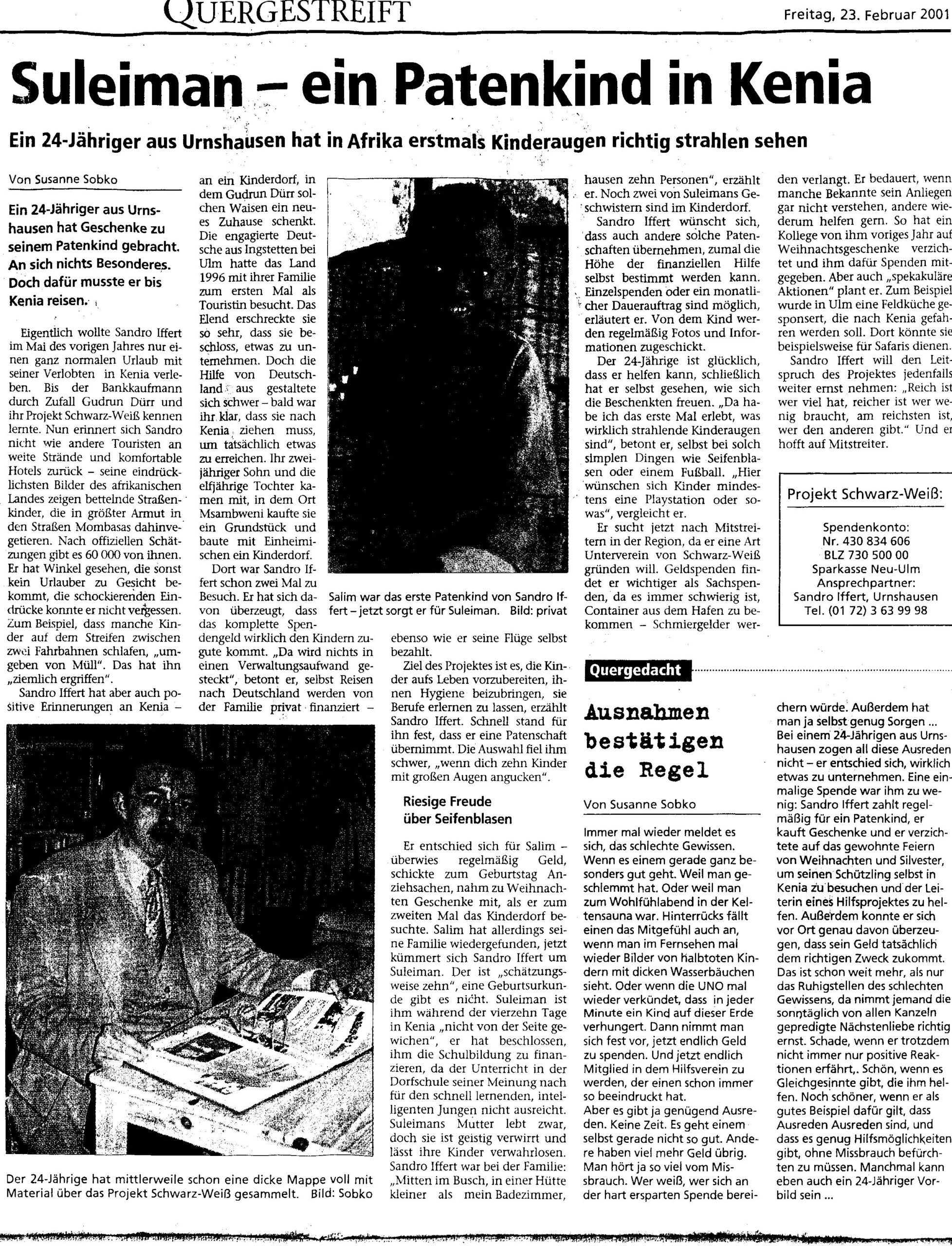 Ein 24-Jähriger aus Urnshausen hat Geschenke zu seinem Patenkind gebracht. An sich nichts Besonderes. Doch dafür musste er bis nach Kenia reisen…