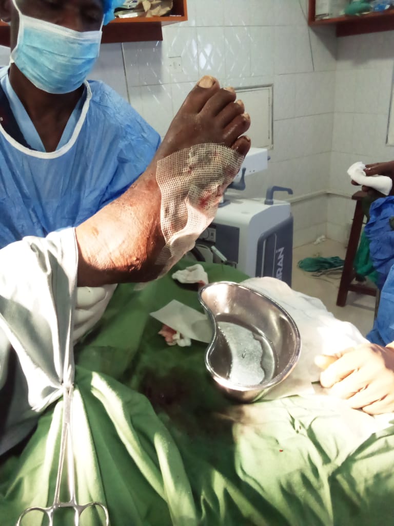 So wie es aussieht, kann sein Fuß nun tatsächlich erhalten werden. Worüber wir sehr froh sind.