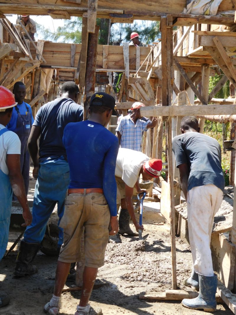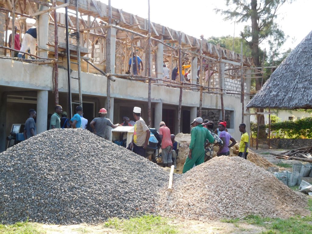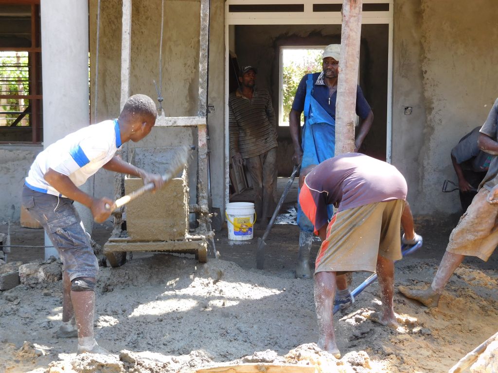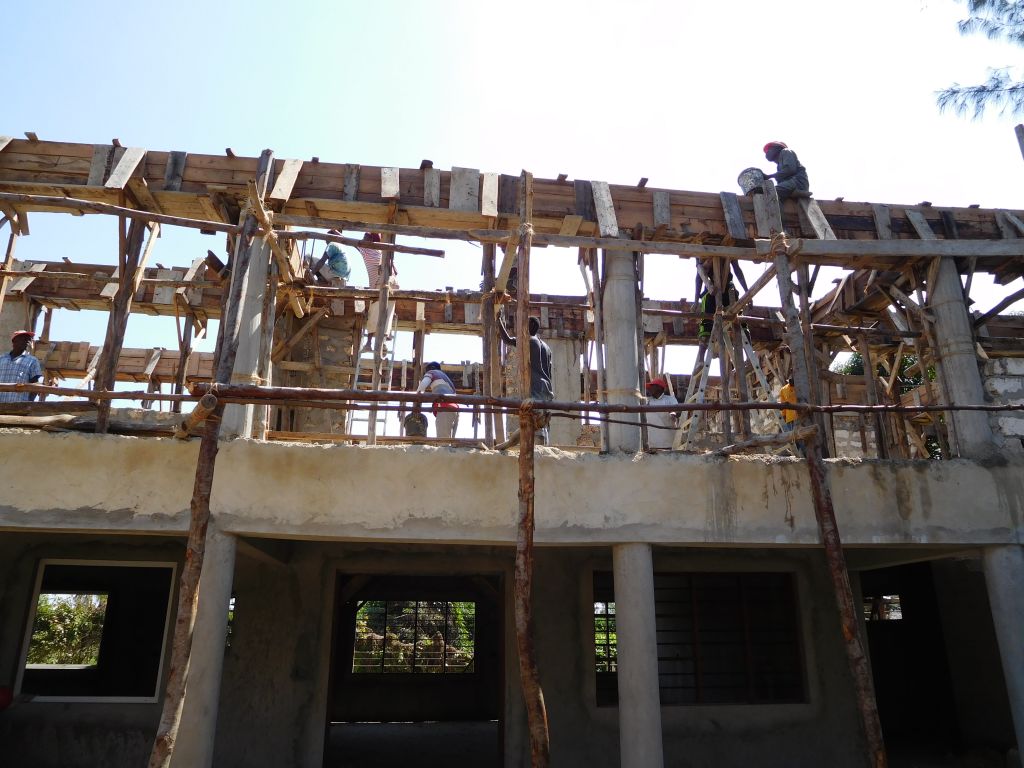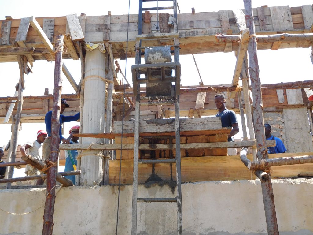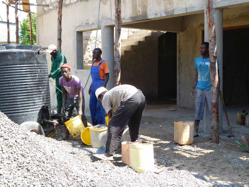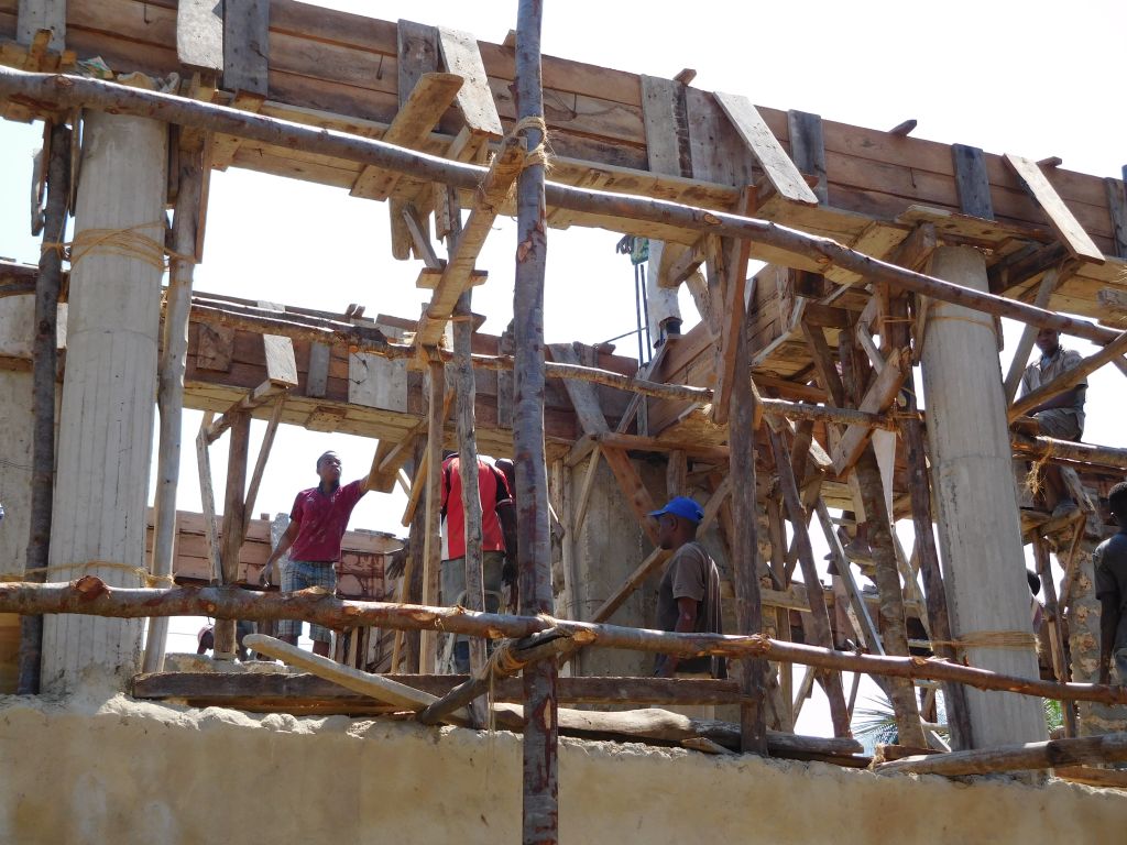 Der Bau geht langsam aber sicher voran. Dies verdanken wir Edmund Dürr und den Mitarbeitern, die für einen kleinen Bonus tatkräftig mithelfen, obwohl diese Arbeit nicht zu ihren Aufgaben gehört. Der Betonring für die Decke im ersten Stock wurde beispielsweise an einem Tag gefertigt und es befanden sich sicherlich mehr als 30 ‚Bauarbeiter‘ an diesem Tag auf dem Bau, unsere älteren Jungen, die Ferien hatten, Jungs aus dem Nice View Fußballteam, Köche, Schreiner, Gärtner, Mechaniker, usw.