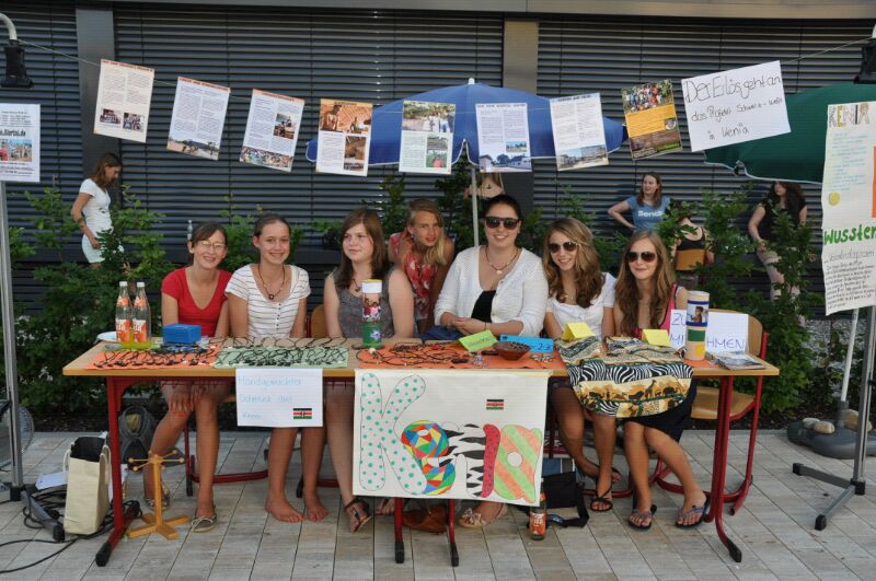 unser Schulfest am Rupert-Ness-Gymnasium Ottobeuren stand dieses Jahr unter dem Thema Toleranz. Unsere Klasse 8a hatte die Idee, das Projekt Schwarz-Weiß zu unterstützen. So informierten wir am Schulfest über das Hilfsprojekt in Kenia auf Plakaten und Folien. Zugleich verkauften wir Ketten, Armbänder, Schlüsselanhänger und Taschen und nahmen somit 325,-€ für die Kinder in Kenia ein, die wir auf das Spendenkonto überwiesen haben.