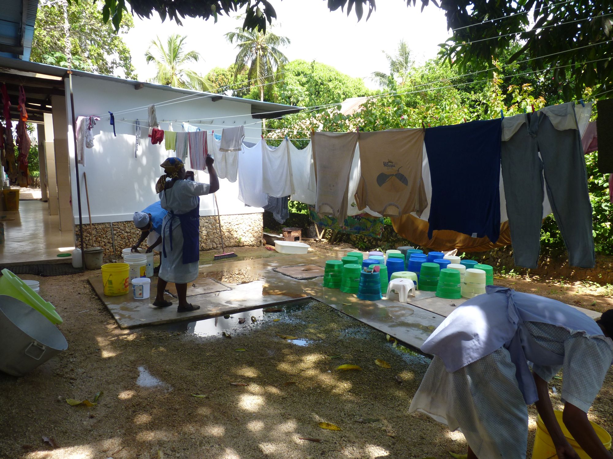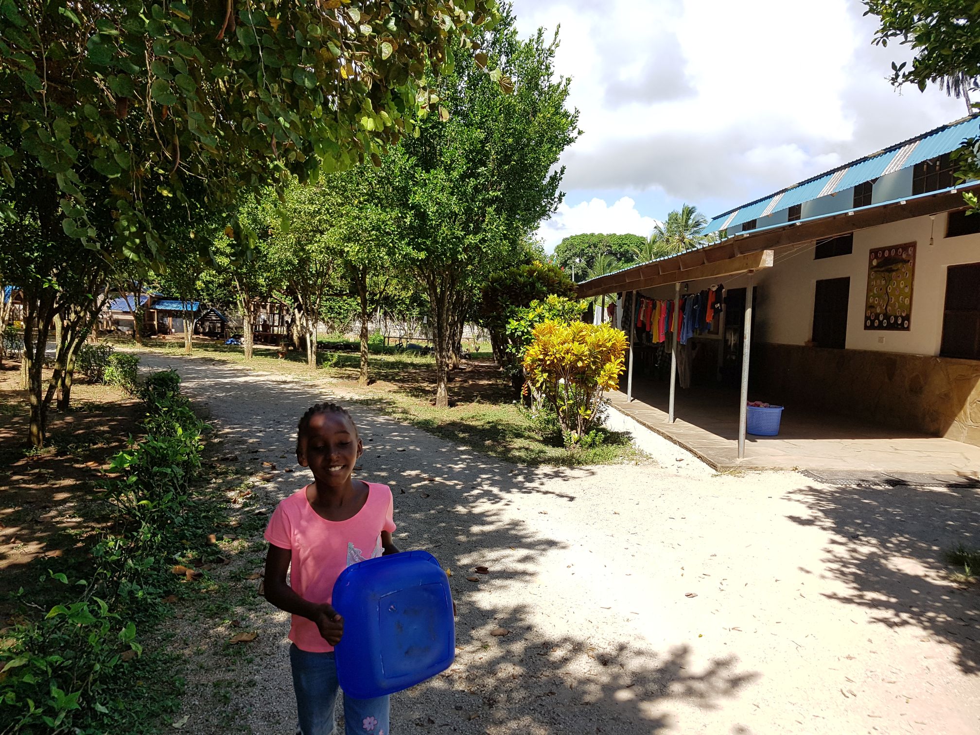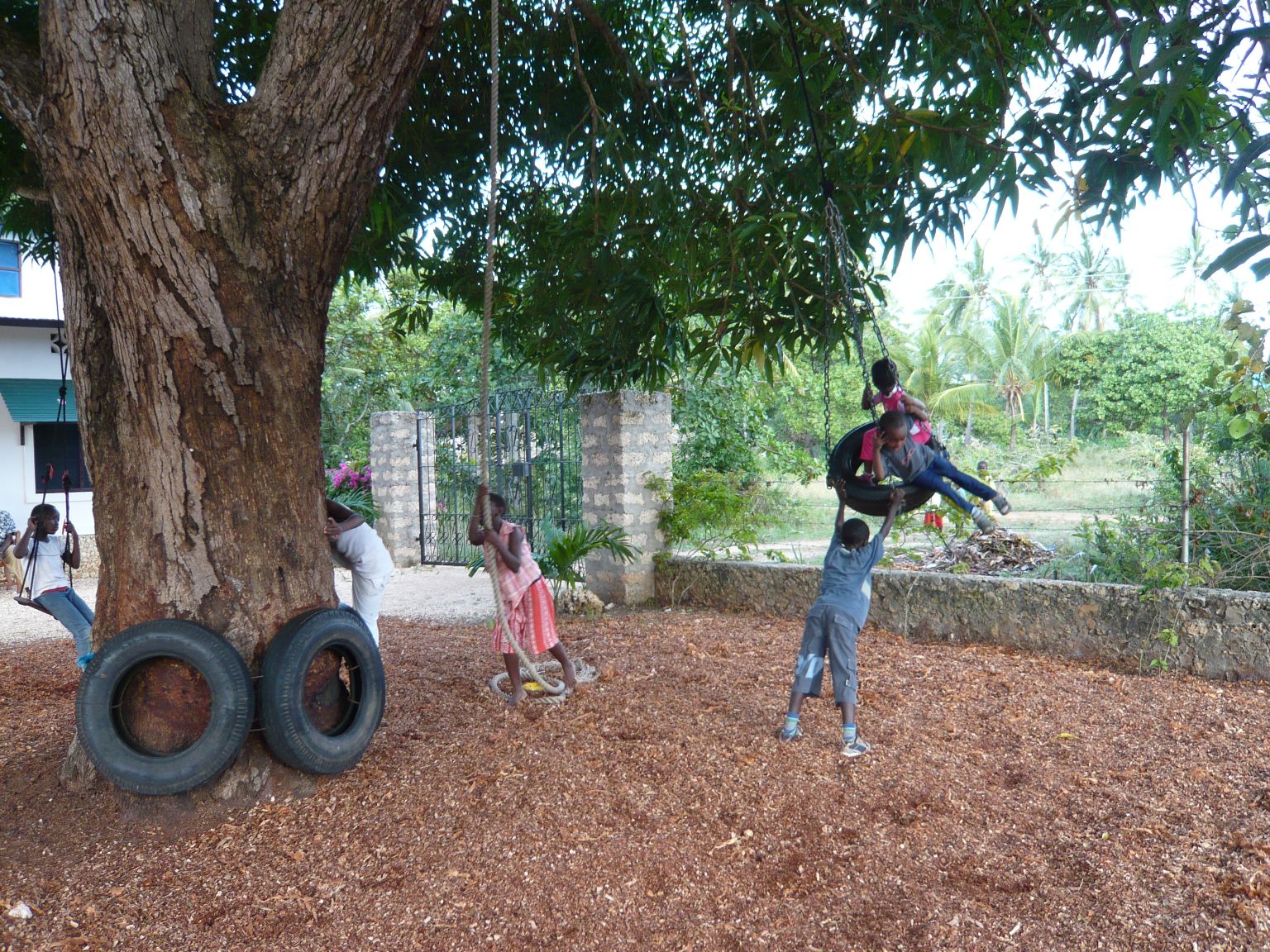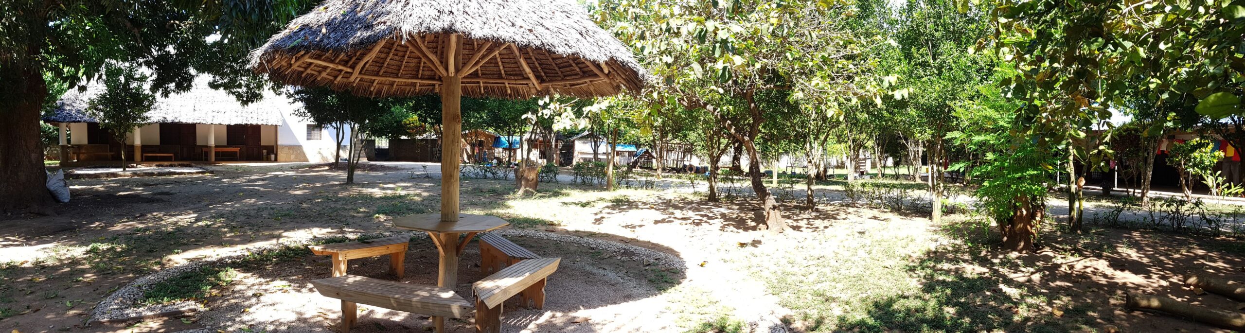 Auch vor dem Jungenhaus befinden sich Spielmöglichkeiten, kann man gemütlich zusammensitzen und blickt, wenn man das Jungenhaus verlässt, auf ein weiteres kleines Gebäude, in dem die ältesten Mädchen untergebracht sind und das Brunnenhaus. Dort befindet sich der Brunnen für eine eigene Wasserversorgung.
