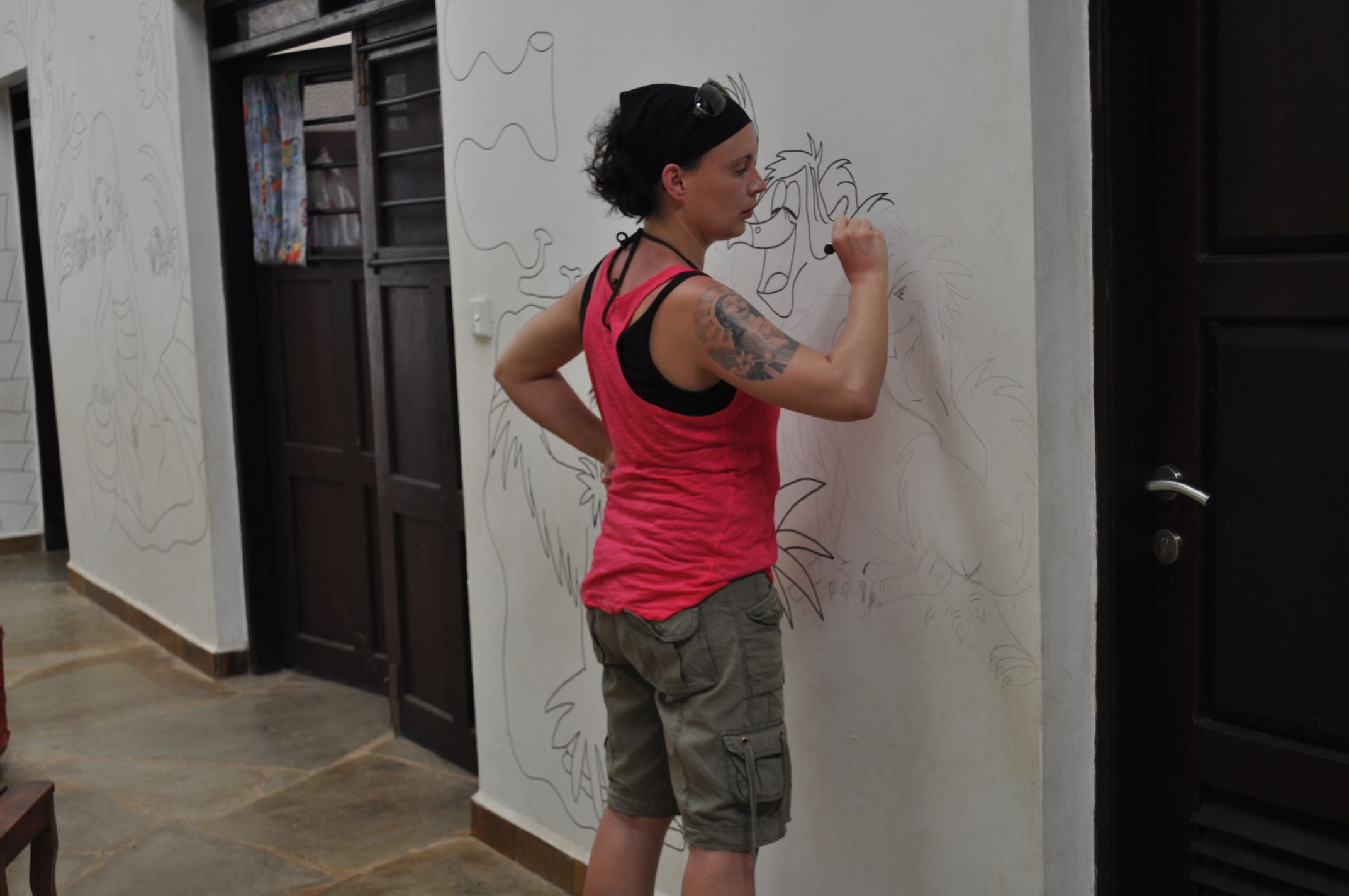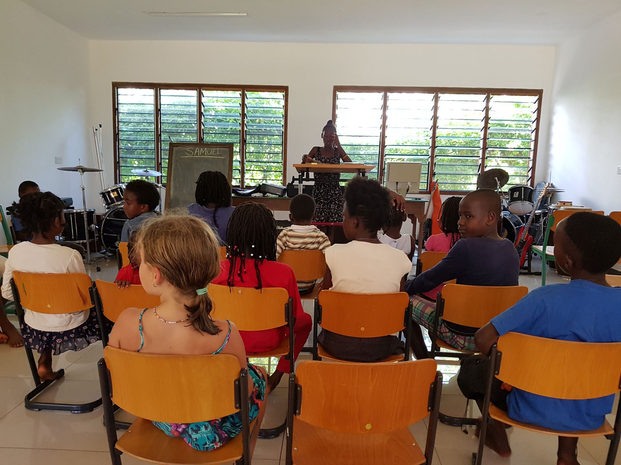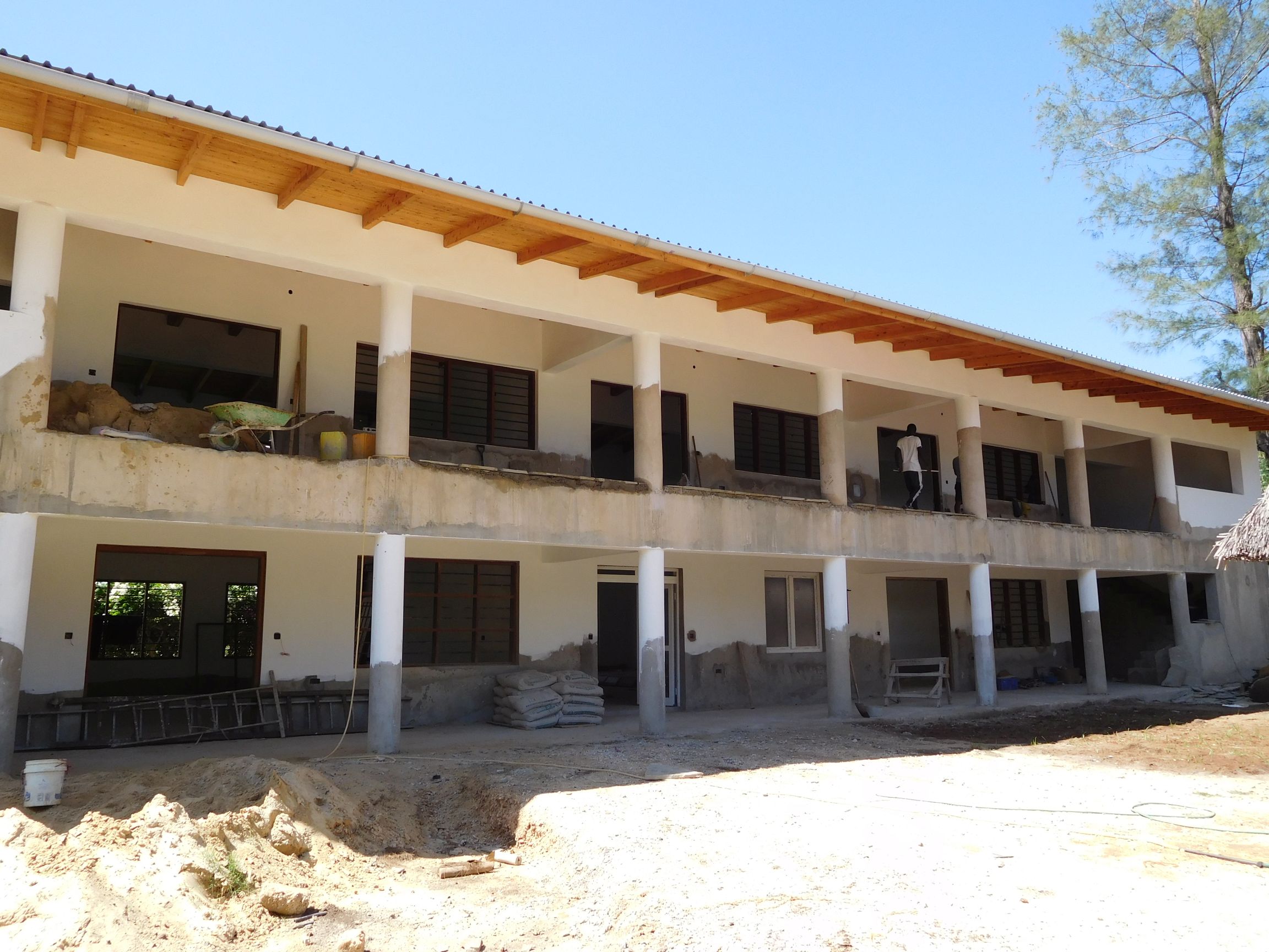 Wenn man vom Gemeinschaftraum Richtung Schule läuft, kommt man an Büros vorbei und geht an Bananenstauden und Mandarinenbäumen entlang durch den gepflegten Garten aufs neue Mehrzweckgebäude zu. Hier wurden Räumlichkeiten zum Spielen, Basteln, Malen, Lesen, Musizieren und für sportliche Aktivitäten (z.B. Yoga) geschaffen. Auch der Computerraum, der ferner von der Schule genutzt wird, ist hier untergebracht. Auf dem Dach konnte eine Solaranlage installiert werden.